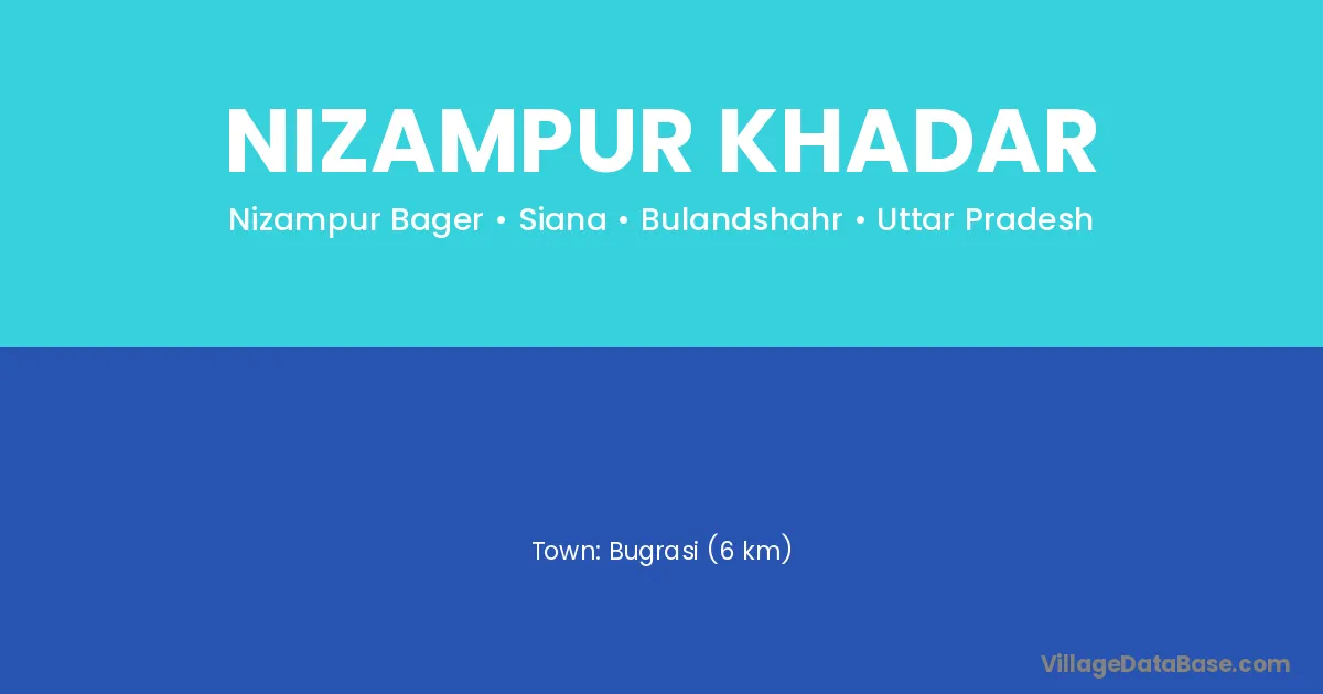Bugrasi (6 km) is the nearest town to Nizampur Khadar village for major economic activities and is located approximately 6 km away.