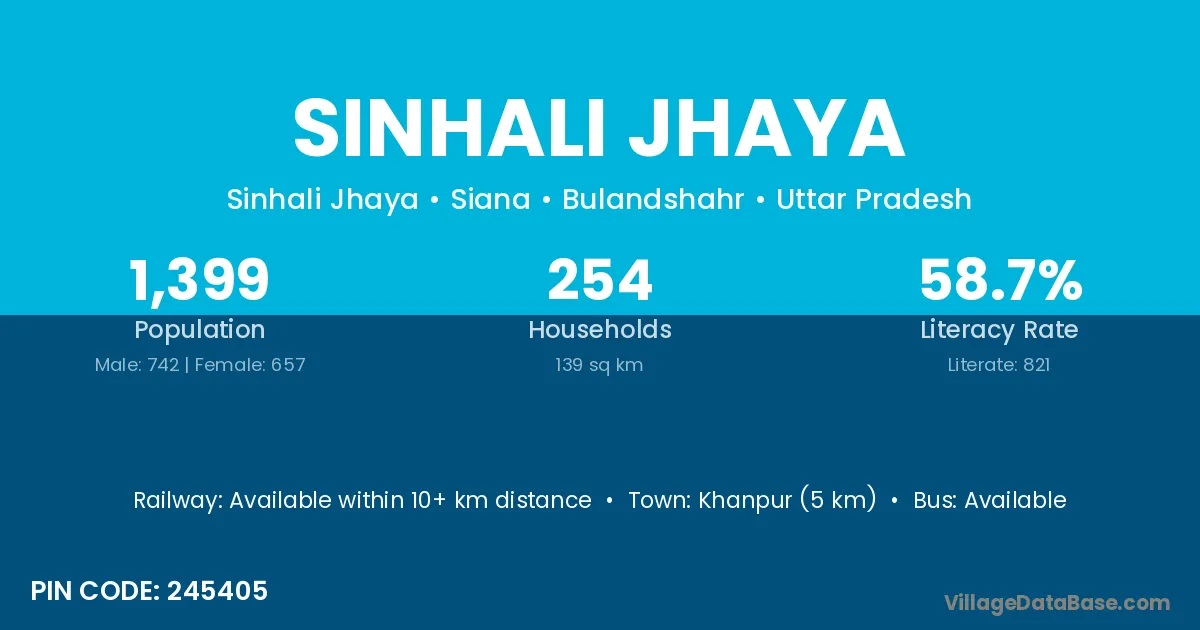 Sinhali Jhaya village has a total population of 1,399 people, of which 742 are males and 657 are females.
