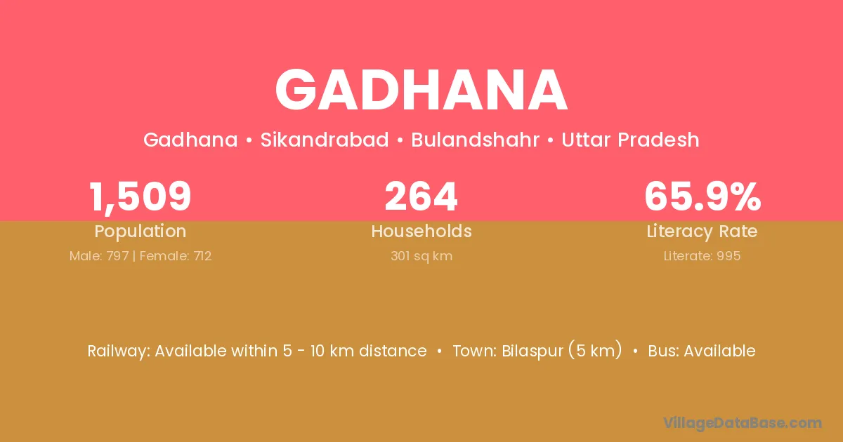 Gadhana village has a total population of 1,509 people, of which 797 are males and 712 are females.