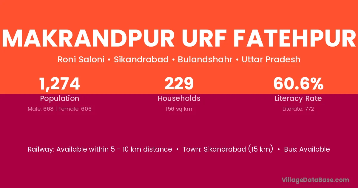 Makrandpur Urf Fatehpur village has a total population of 1,274 people, of which 668 are males and 606 are females.