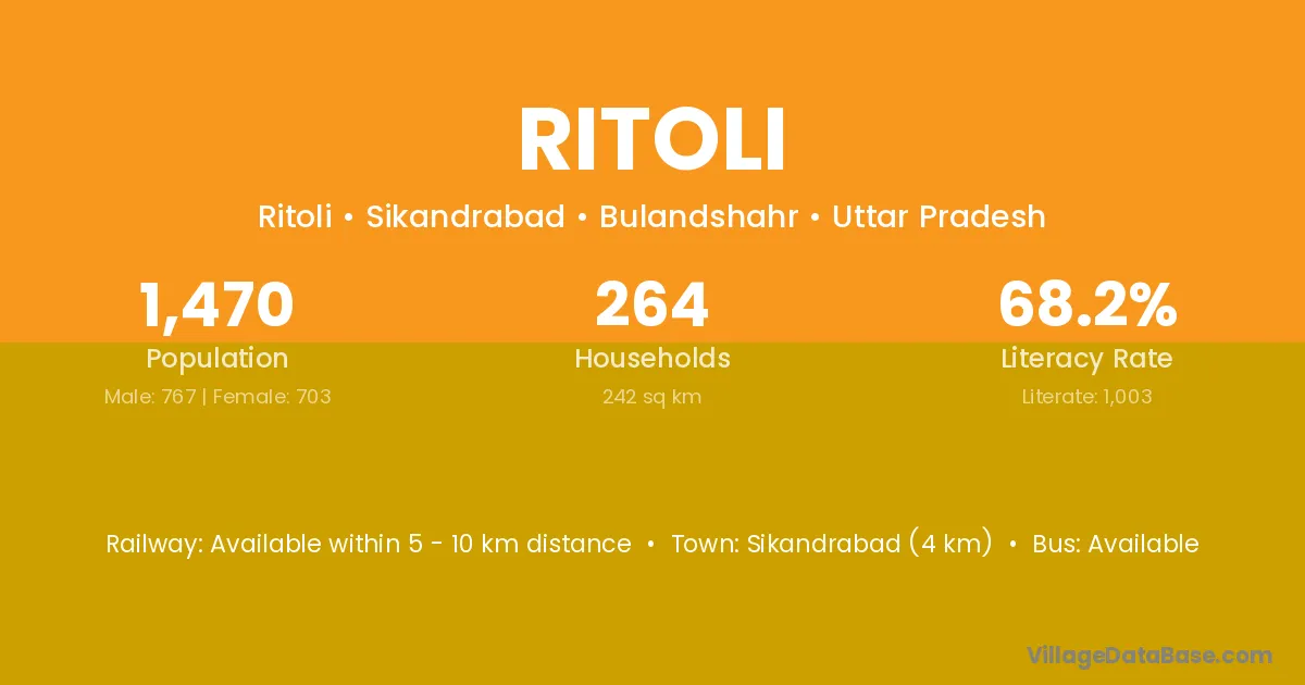 Sikandrabad (4 km) is the nearest town to Ritoli village for major economic activities and is located approximately 4 km away.