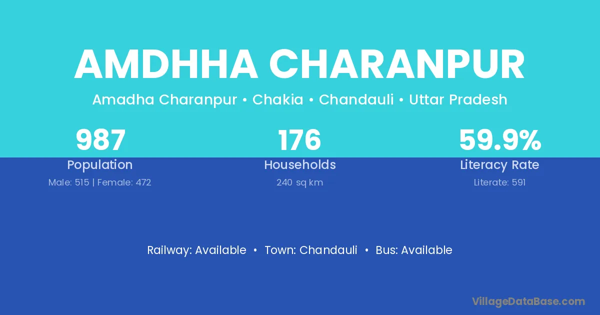 Amdhha Charanpur village has a total population of 987 people, of which 515 are males and 472 are females.