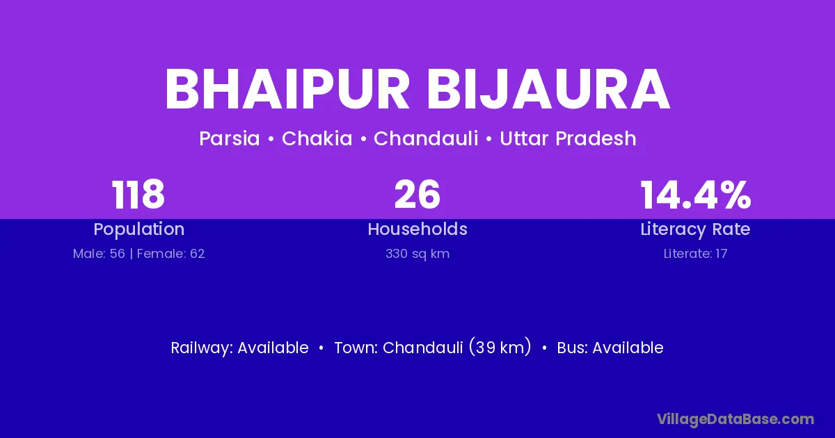 Chandauli (39 km) is the nearest town to Bhaipur Bijaura village for major economic activities and is located approximately 39 km away.
