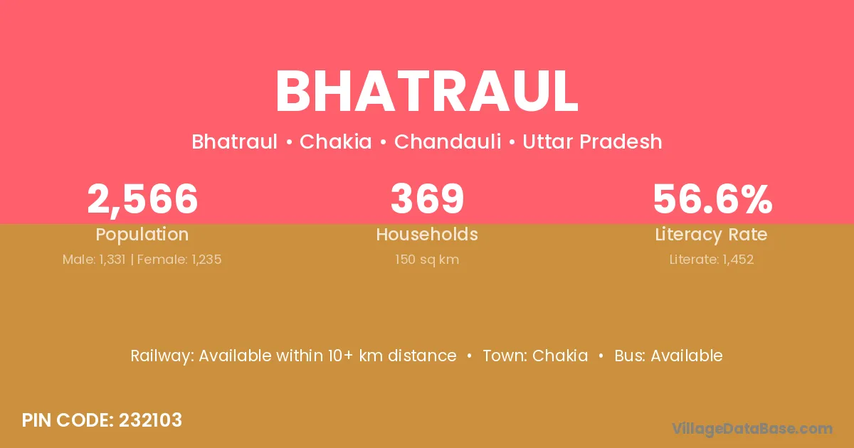 Chakia is the nearest town to Bhatraul village for major economic activities