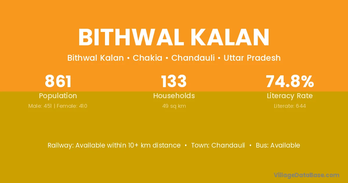 Chandauli is the nearest town to Bithwal Kalan village for major economic activities