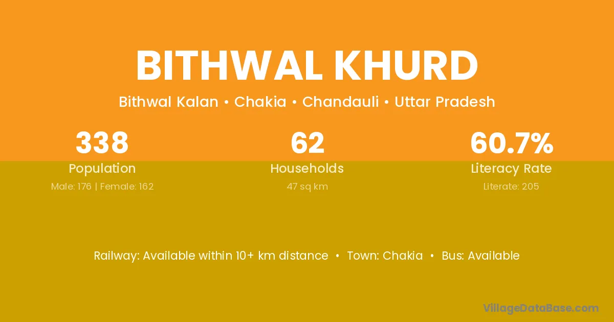 Bithwal Khurd village has a total population of 338 people, of which 176 are males and 162 are females.