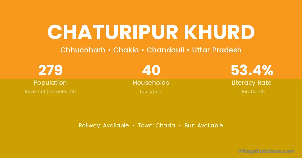 Chaturipur Khurd village has a total population of 279 people, of which 139 are males and 140 are females.