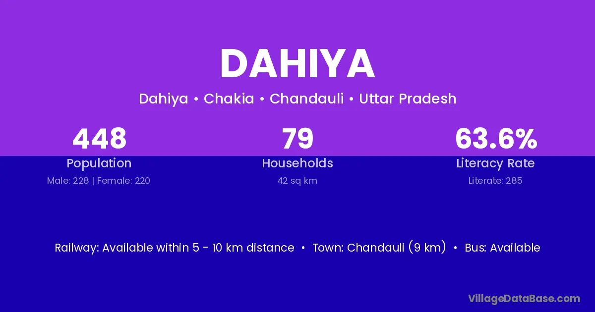 Chandauli (9 km) is the nearest town to Dahiya village for major economic activities and is located approximately 9 km away.