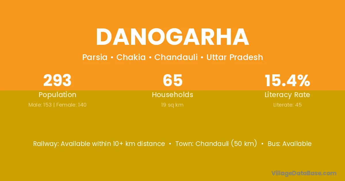 Chandauli (50 km) is the nearest town to Danogarha village for major economic activities and is located approximately 50 km away.