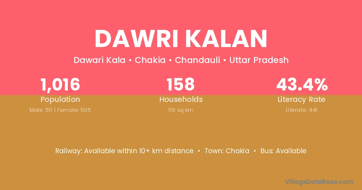 Dawri Kalan village has a total population of 1,016 people, of which 511 are males and 505 are females.