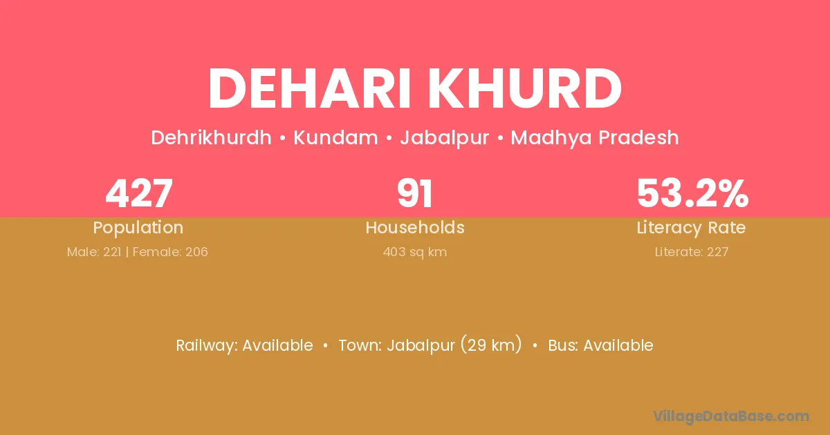 Dehari Khurd village has a total population of 579 people, of which 306 are males and 273 are females.
