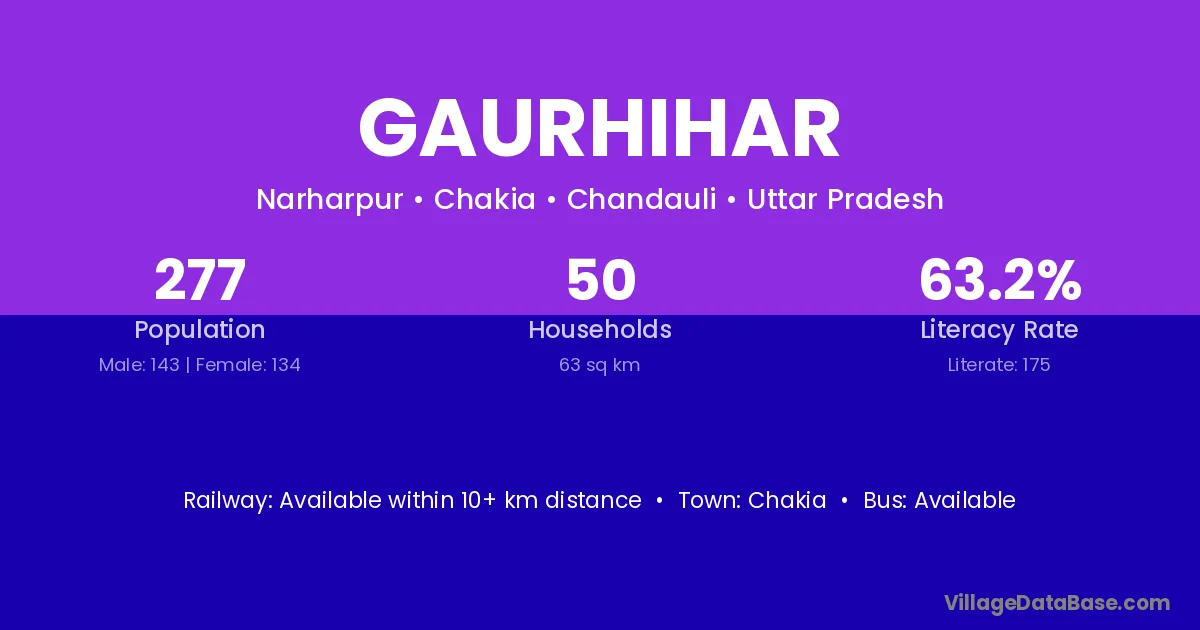 Chakia is the nearest town to Gaurhihar village for major economic activities