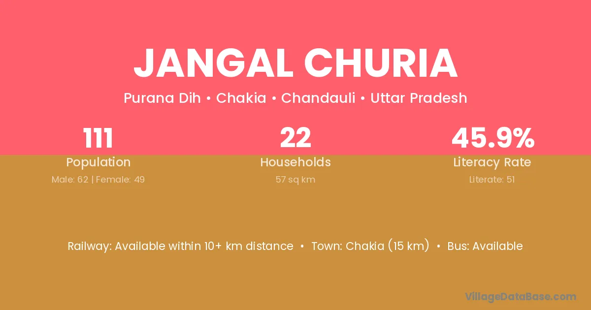 Jangal Churia village has a total population of 111 people, of which 62 are males and 49 are females.