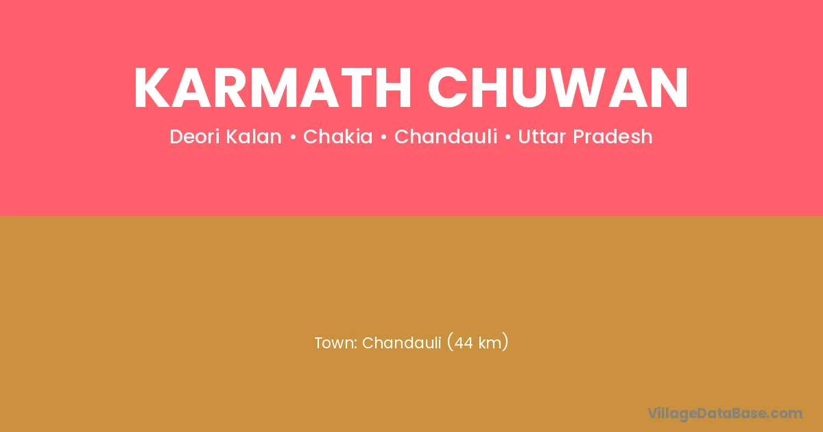 Chandauli (44 km) is the nearest town to Karmath Chuwan village for major economic activities and is located approximately 44 km away.