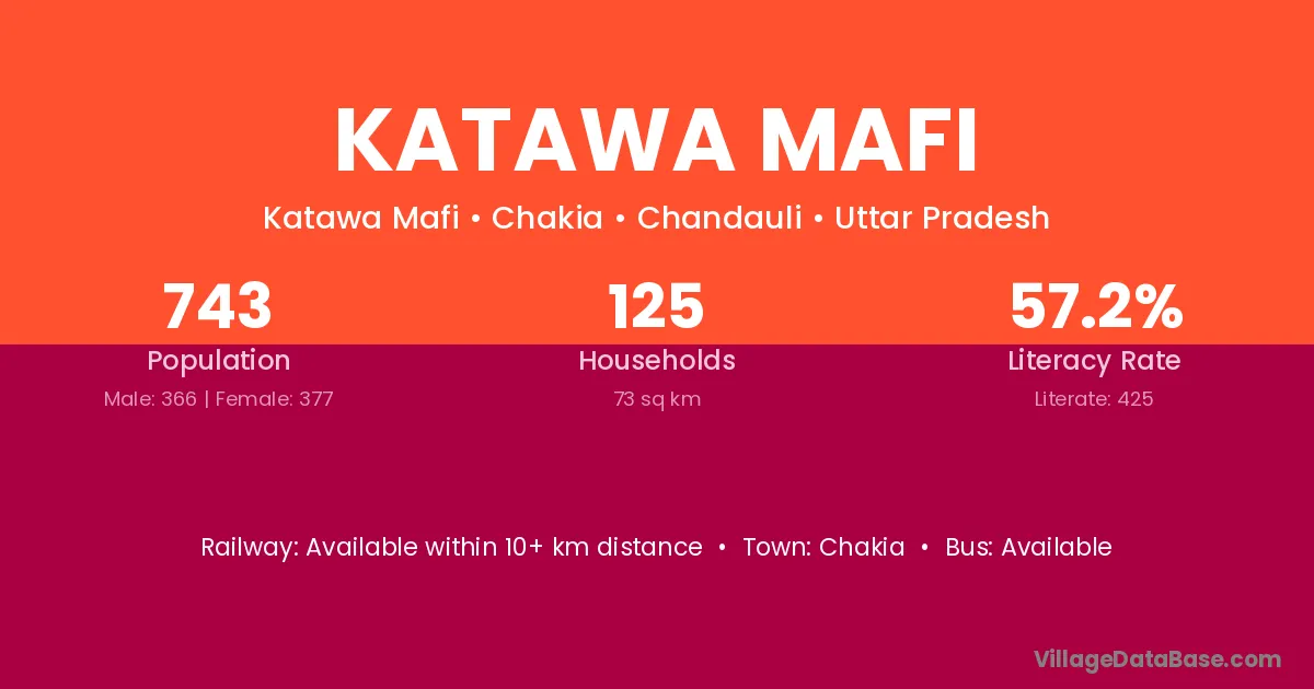 Katawa Mafi village has a total population of 743 people, of which 366 are males and 377 are females.
