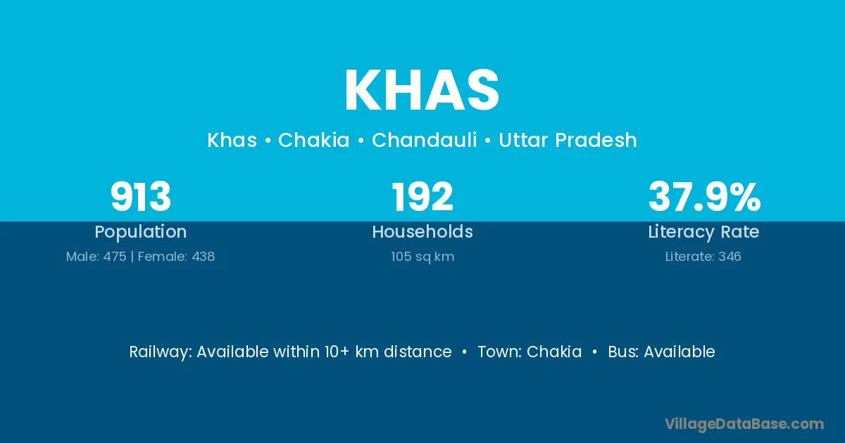 The literacy rate of Khas village is 37.90%. Male literacy stands at 49.26% and female literacy at 25.57%.