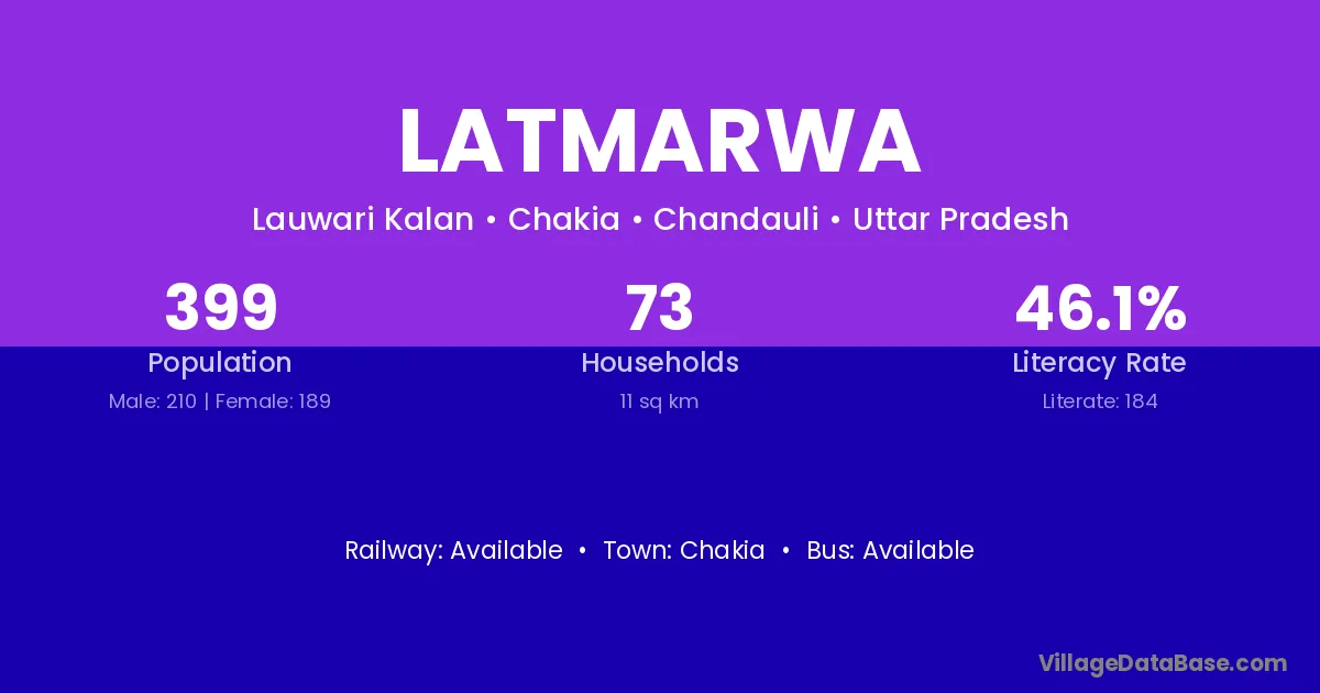 Latmarwa village has a total population of 399 people, of which 210 are males and 189 are females.