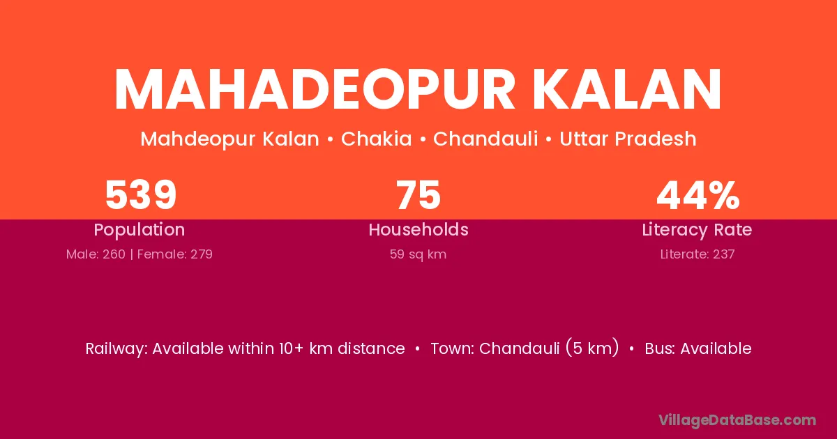 Chandauli (5 km) is the nearest town to Mahadeopur Kalan village for major economic activities and is located approximately 5 km away.