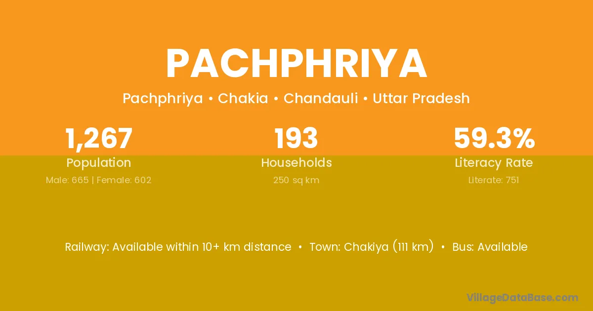 Pachphriya village has a total population of 1,267 people, of which 665 are males and 602 are females.