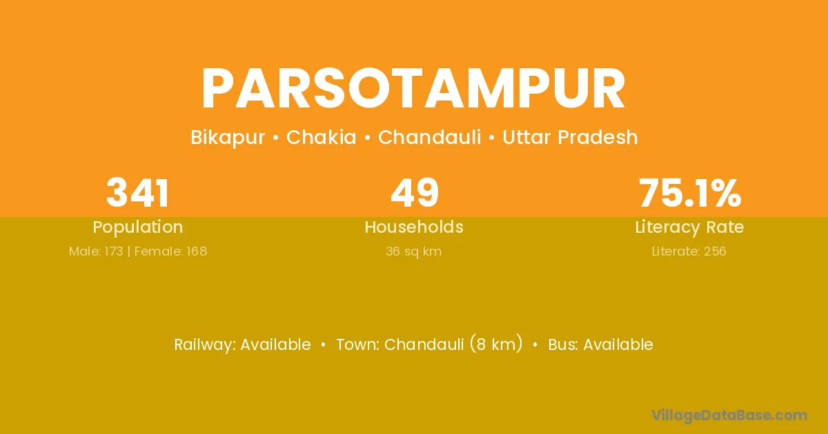 Chandauli (8 km) is the nearest town to Parsotampur village for major economic activities and is located approximately 8 km away.