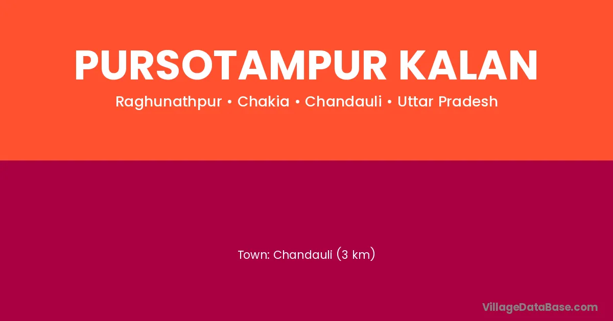 Chandauli (3 km) is the nearest town to Pursotampur Kalan village for major economic activities and is located approximately 3 km away.
