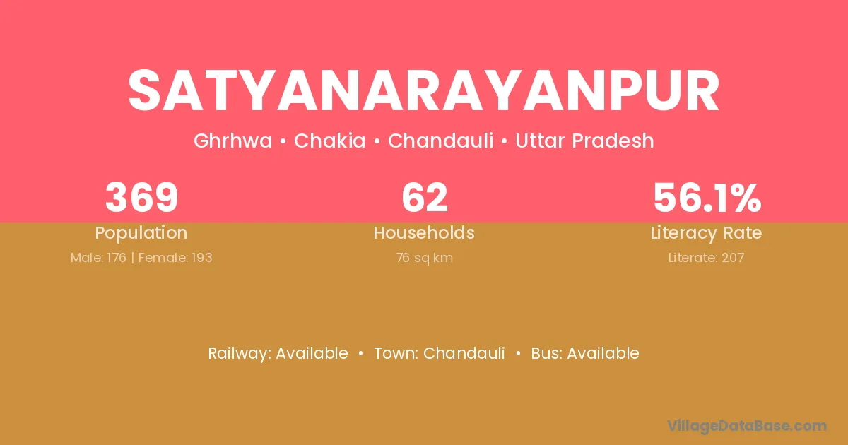 Satyanarayanpur village has a total population of 369 people, of which 176 are males and 193 are females.