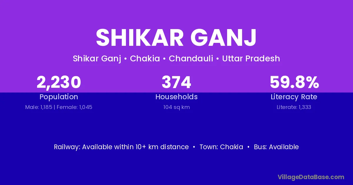 Shikar Ganj village has a total population of 2,230 people, of which 1,185 are males and 1,045 are females.