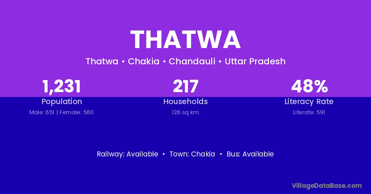 Thatwa village has a total population of 1,231 people, of which 651 are males and 580 are females.