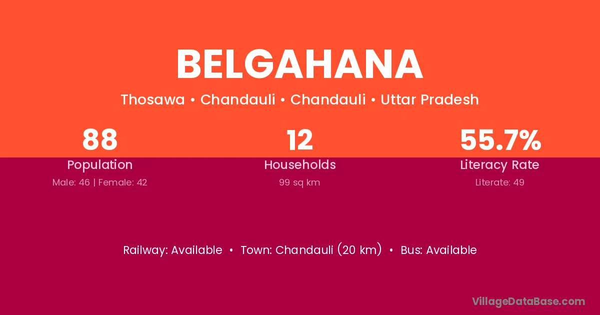 Chandauli (20 km) is the nearest town to Belgahana village for major economic activities and is located approximately 20 km away.
