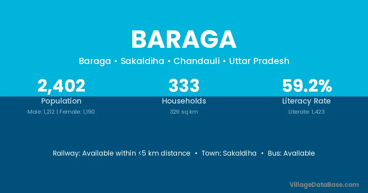 Baraga village is located in the Sakaldiha Tehsil of the Chandauli district in Uttar Pradesh .