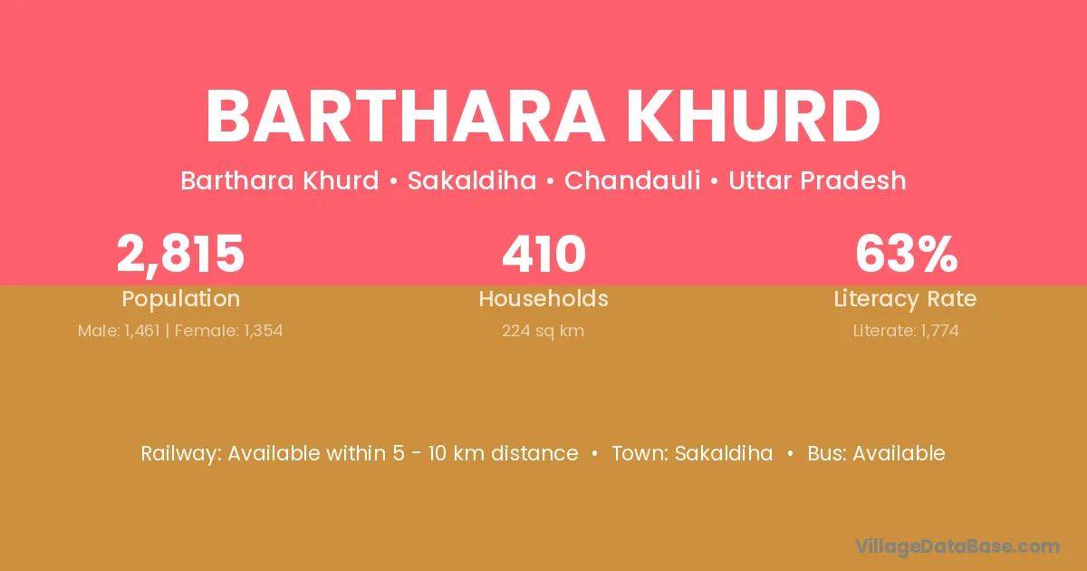 Sakaldiha is the nearest town to Barthara Khurd village for major economic activities