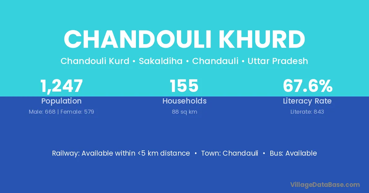 Chandouli Khurd village has a total population of 1,247 people, of which 668 are males and 579 are females.