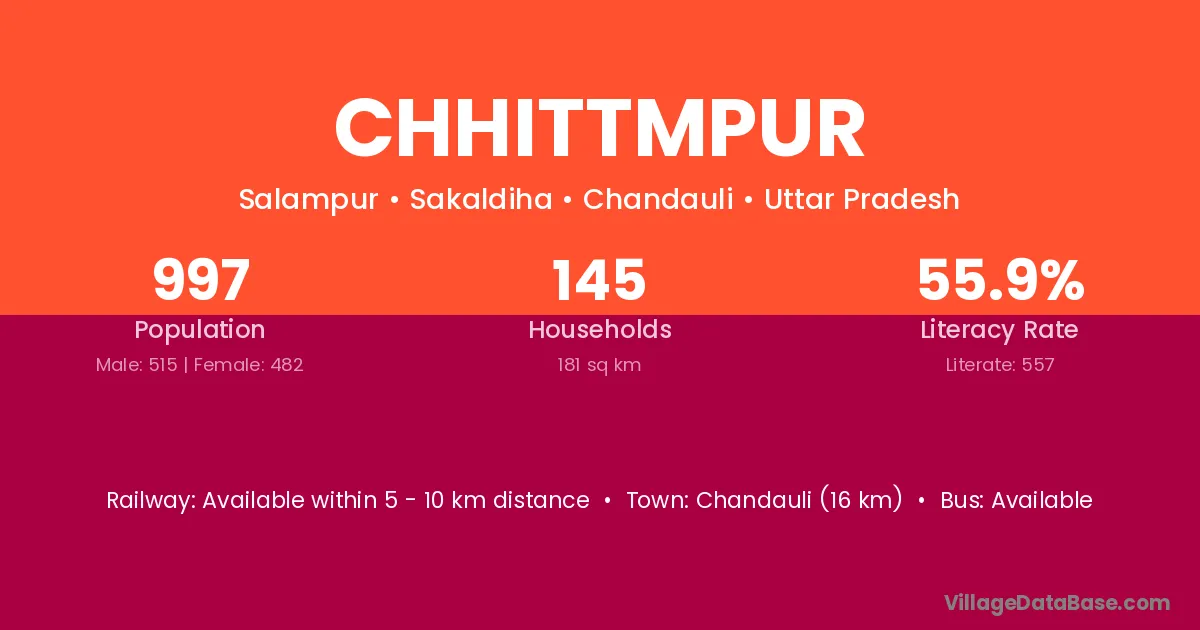 Chandauli (16 km) is the nearest town to Chhittmpur village for major economic activities and is located approximately 16 km away.