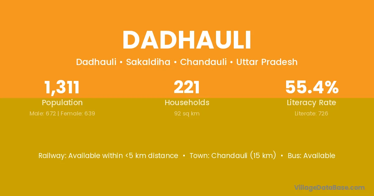 Chandauli (15 km) is the nearest town to Dadhauli village for major economic activities and is located approximately 15 km away.