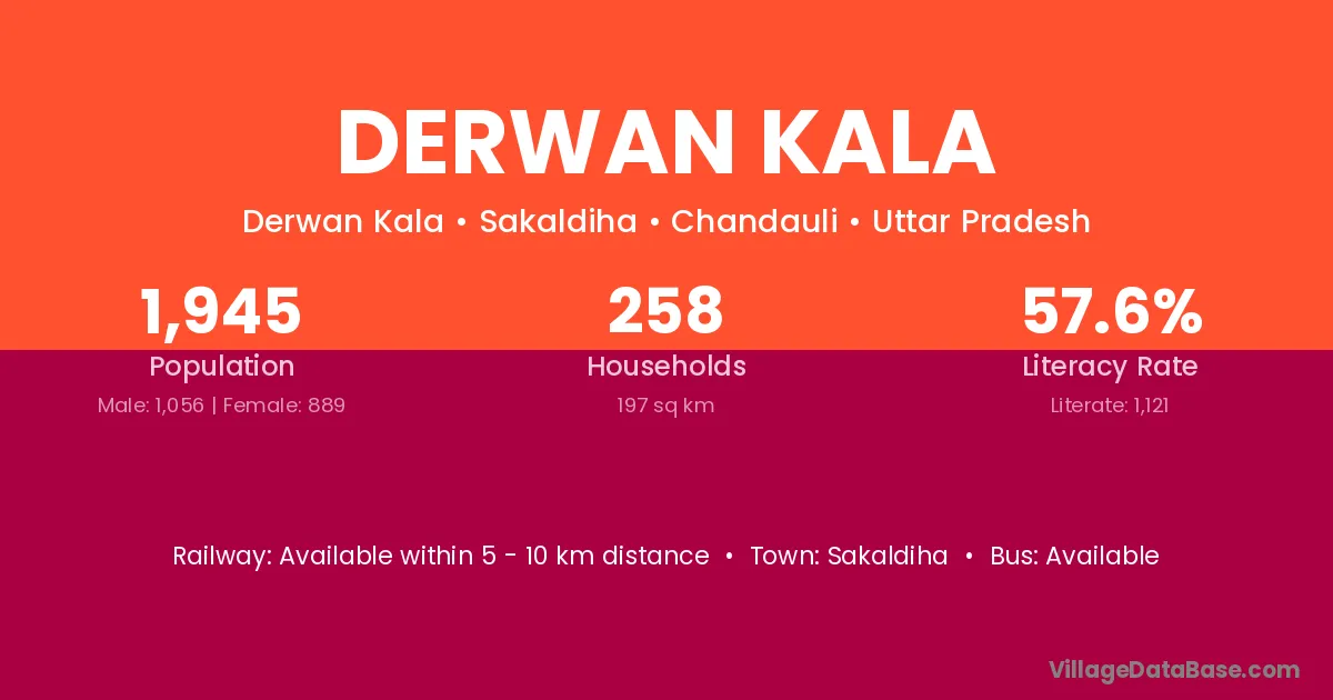 Sakaldiha is the nearest town to Derwan Kala village for major economic activities