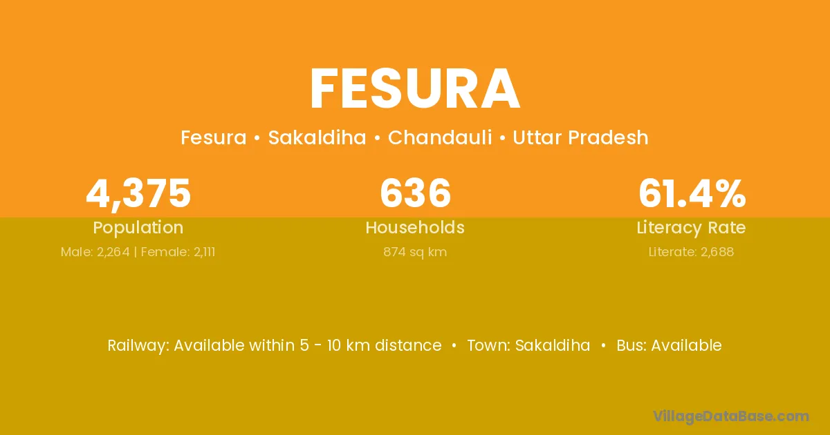 Sakaldiha is the nearest town to Fesura village for major economic activities