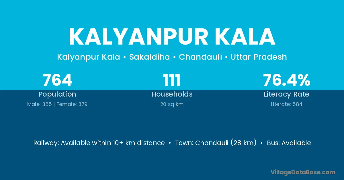 Chandauli (28 km) is the nearest town to Kalyanpur Kala village for major economic activities and is located approximately 28 km away.
