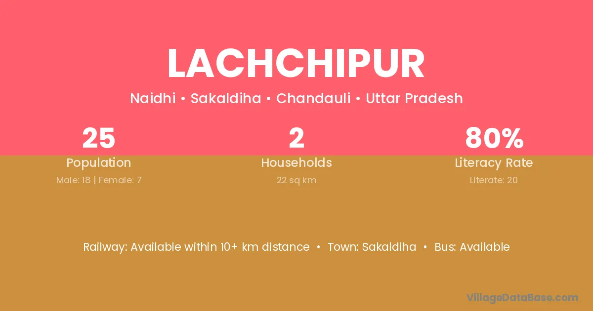 Lachchipur village has a total population of 25 people, of which 18 are males and 7 are females.