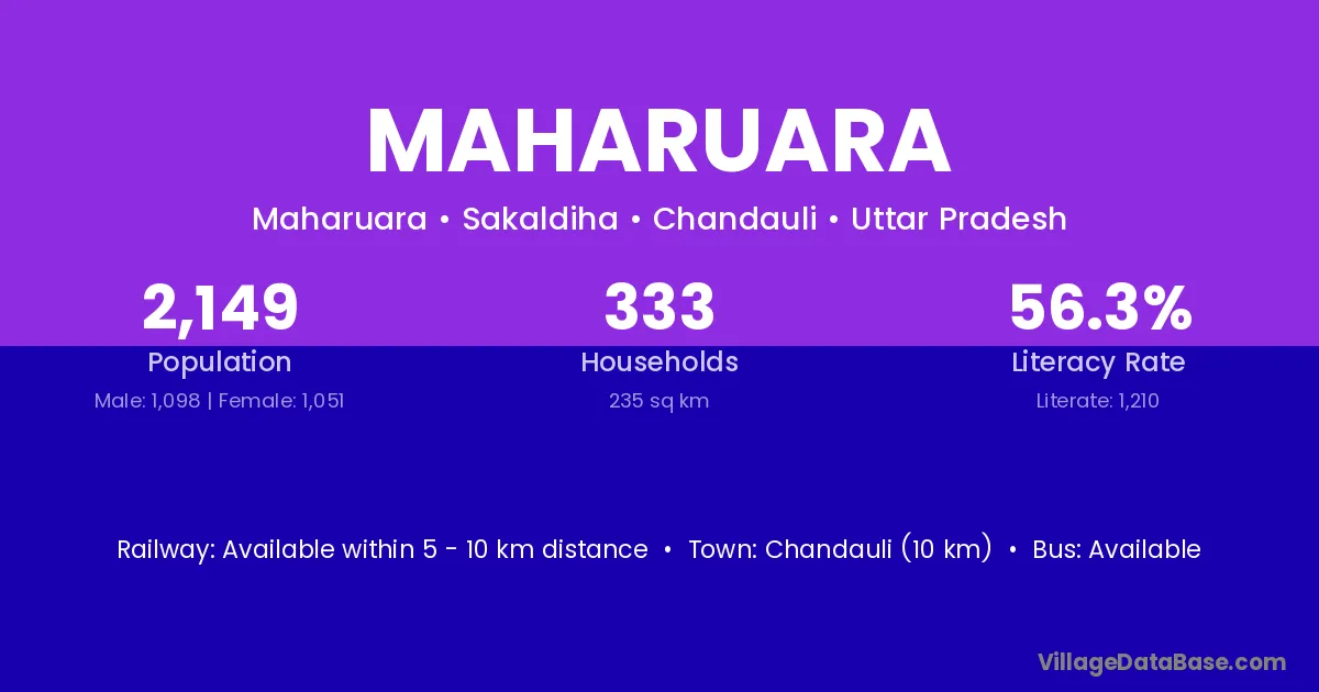 Chandauli (10 km) is the nearest town to Maharuara village for major economic activities and is located approximately 10 km away.