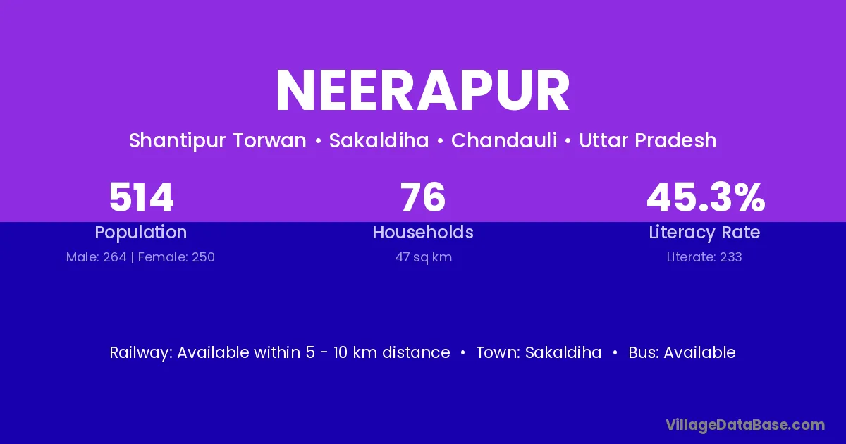 Neerapur village has a total population of 514 people, of which 264 are males and 250 are females.