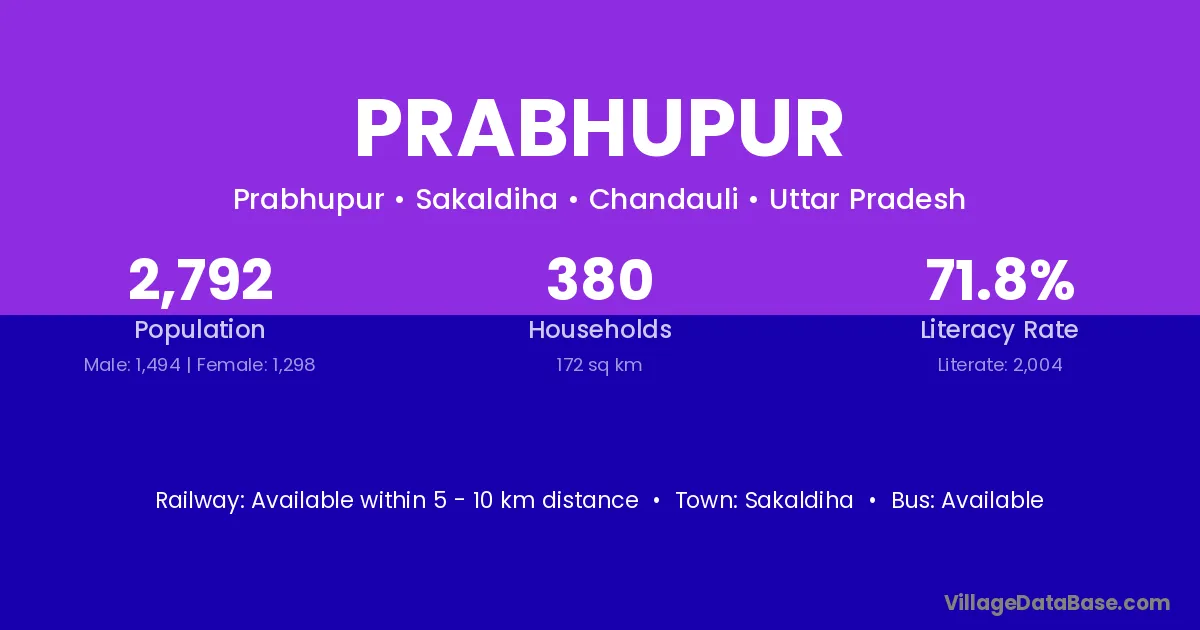 Prabhupur village has a total population of 2,792 people, of which 1,494 are males and 1,298 are females.