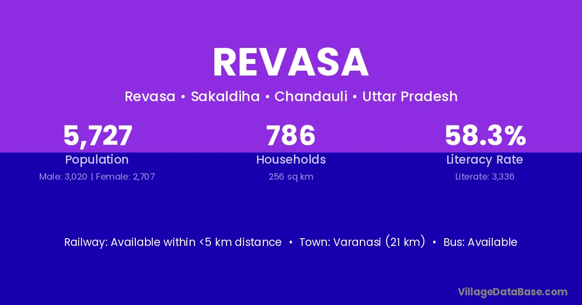 Varanasi (21 km) is the nearest town to Revasa village for major economic activities and is located approximately 21 km away.