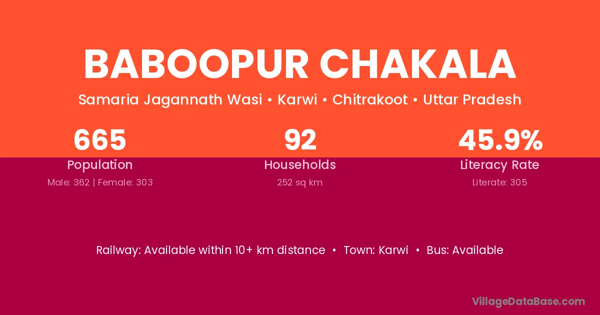 Karwi is the nearest town to Baboopur Chakala village for major economic activities