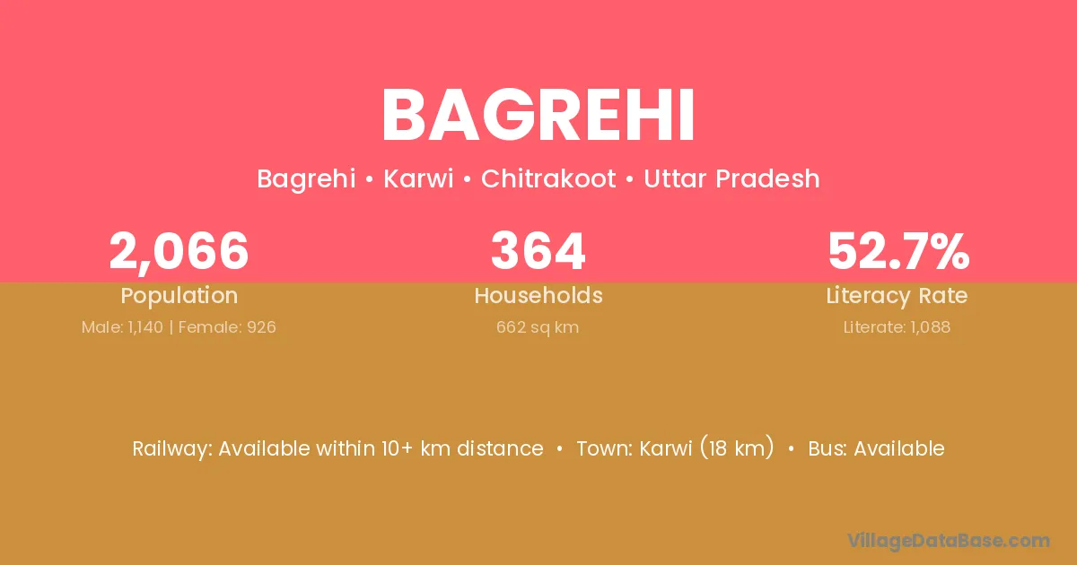 Karwi (18 km) is the nearest town to Bagrehi village for major economic activities and is located approximately 18 km away.