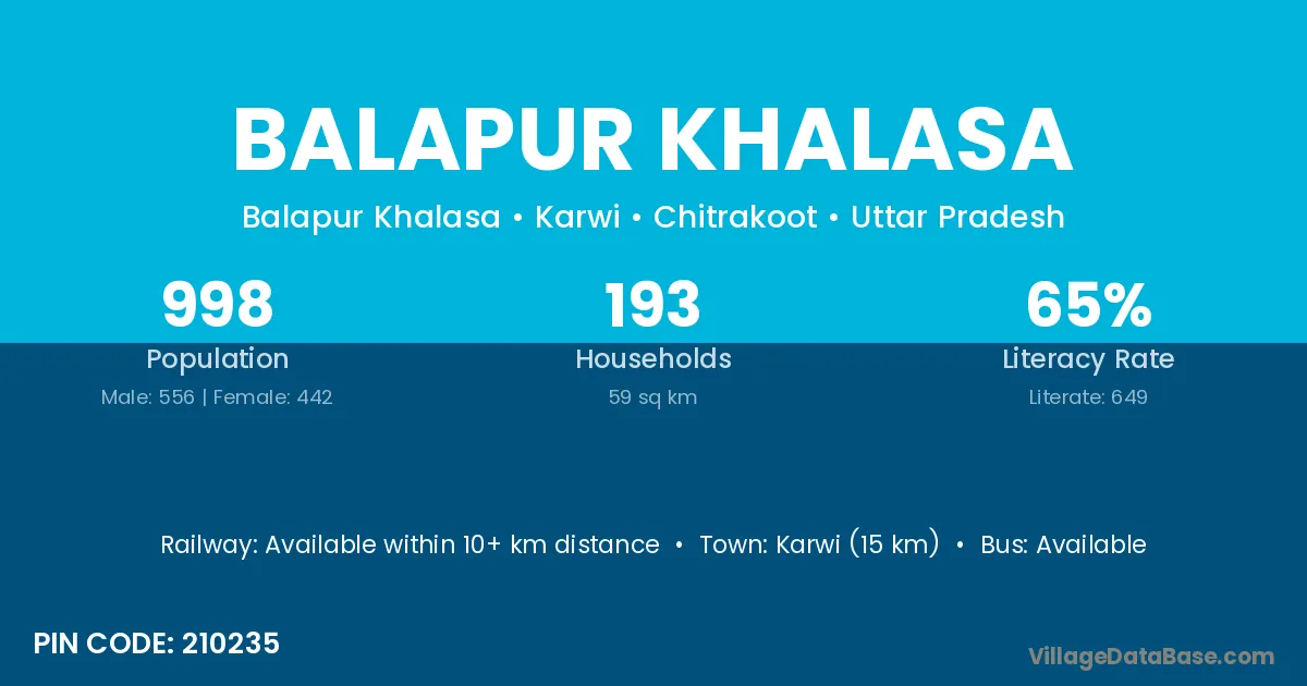 Karwi (15 km) is the nearest town to Balapur Khalasa village for major economic activities and is located approximately 15 km away.