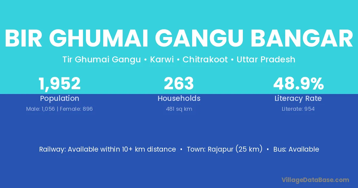 Rajapur (25 km) is the nearest town to Bir Ghumai Gangu Bangar village for major economic activities and is located approximately 25 km away.
