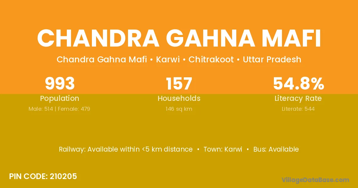 Chandra Gahna Mafi village has a total population of 993 people, of which 514 are males and 479 are females.
