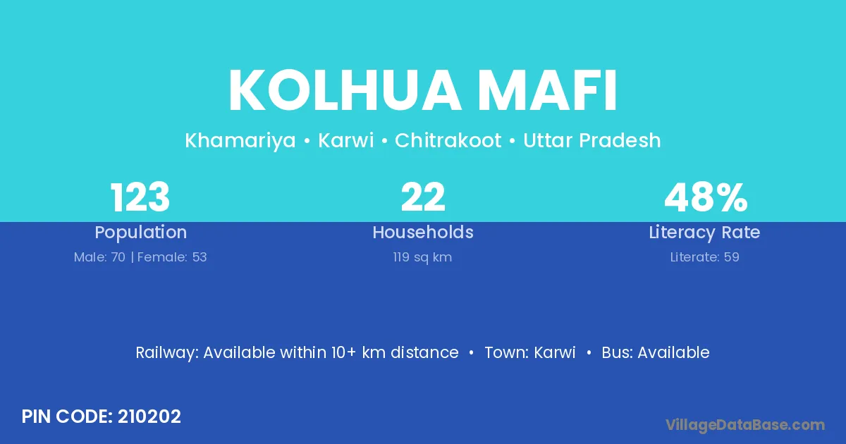 Karwi is the nearest town to Kolhua Mafi village for major economic activities