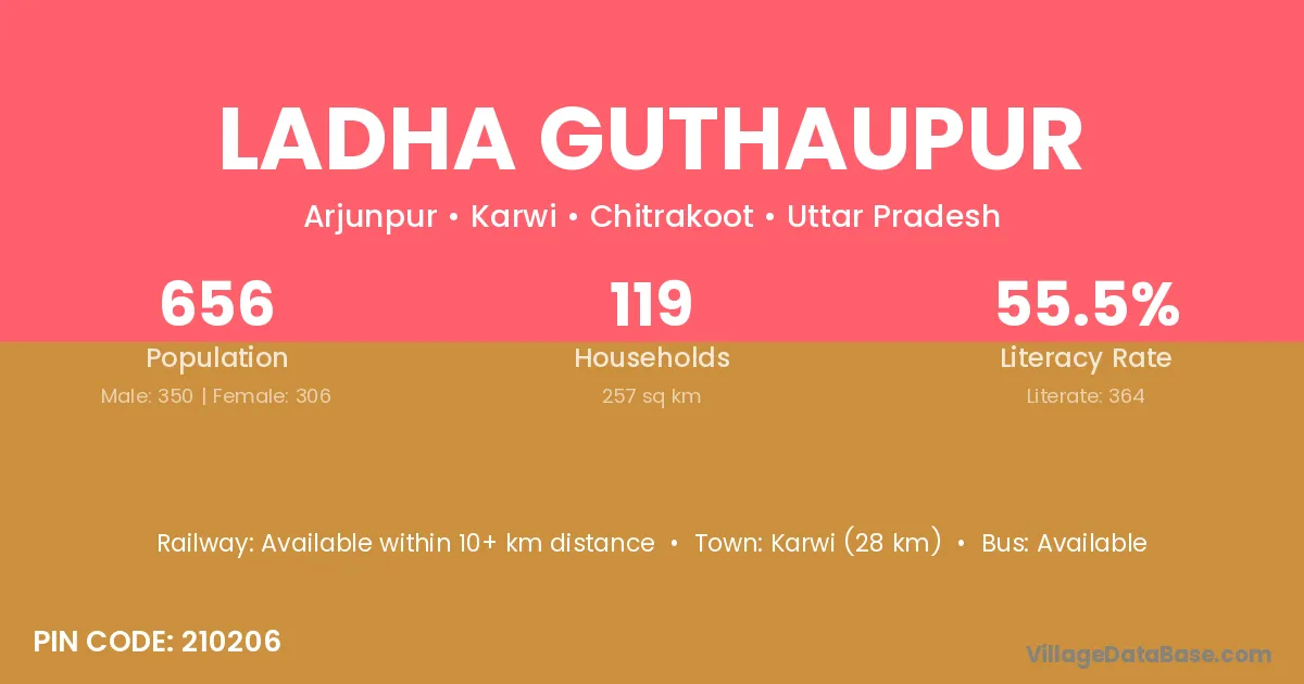 Ladha Guthaupur village has a total population of 656 people, of which 350 are males and 306 are females.