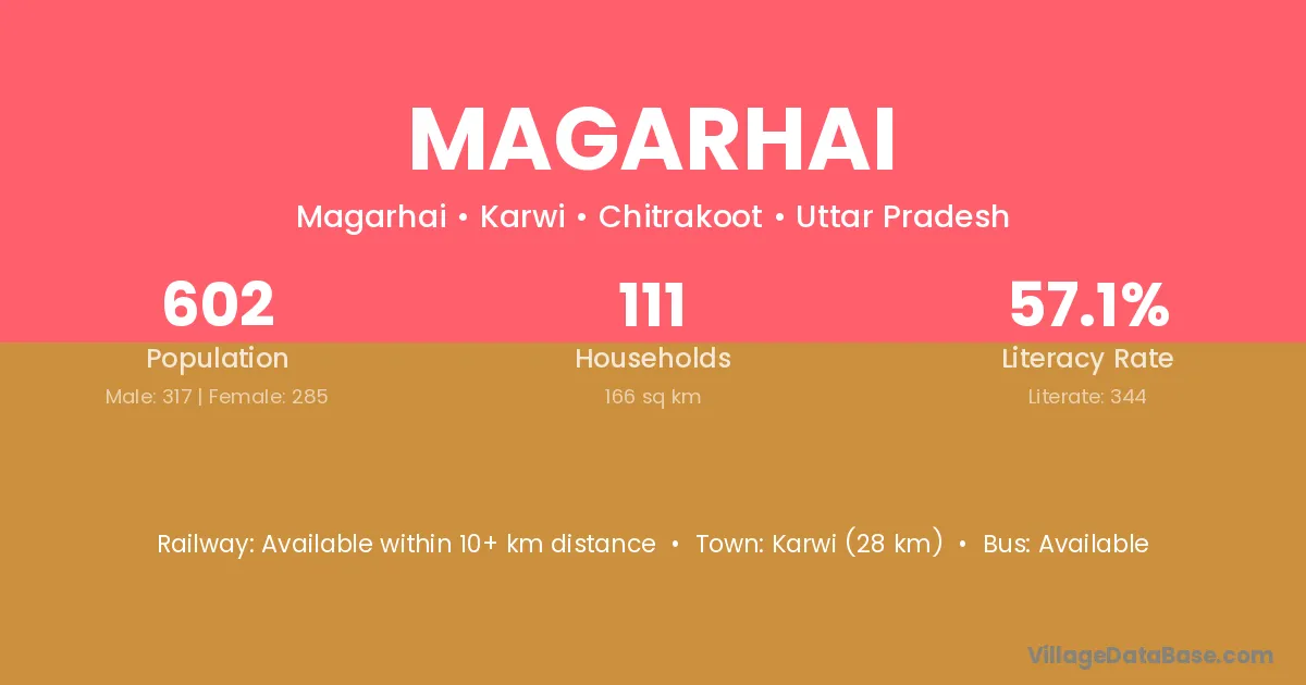 Karwi (28 km) is the nearest town to Magarhai village for major economic activities and is located approximately 28 km away.